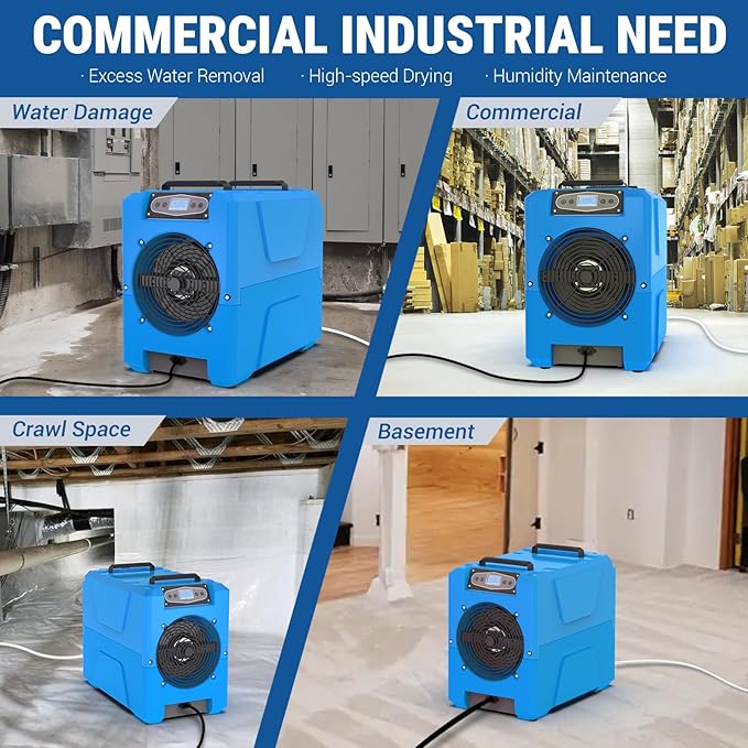 - Versatile Usage: Perfect for basements, warehouses, and other large commercial spaces, this dehumidifier has a capacity of 80 pints per day at AHAM and 150 pints per day at saturation, ensuring a dry and comfortable environment.