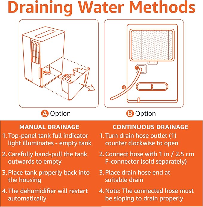 - AUTO RE-START FUNCTION: These large dehumidifiers for home conveniently resume operation with your previous settings after a power outage, providing consistent humidity control without hassle