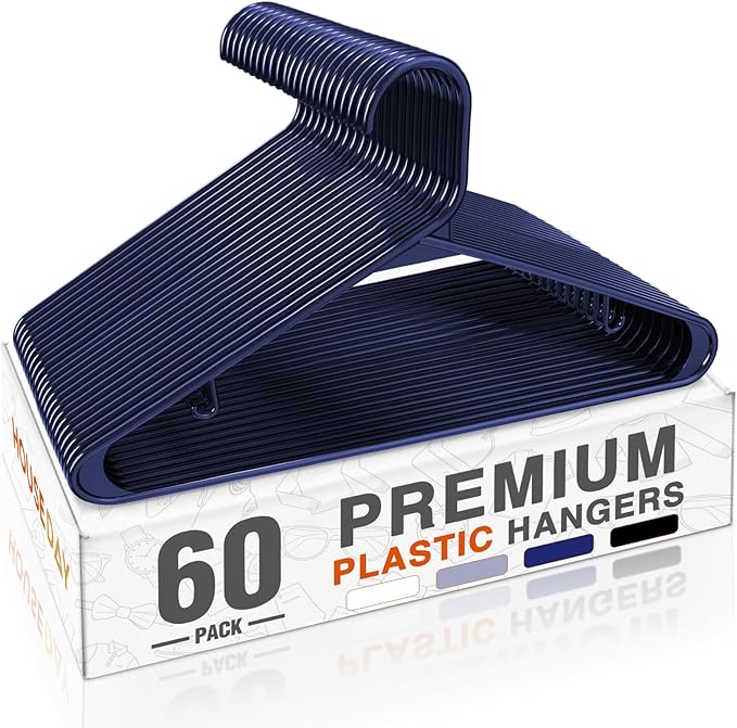 HOUSE DAY Blue Plastic Hangers 60 Pack, Clothes Hangers with Non Slip Hooks, Durable & Space Saving Coat Hanger, Light-Weight Clothing Hangers, Perfect Closet Organizer for Everyday Use