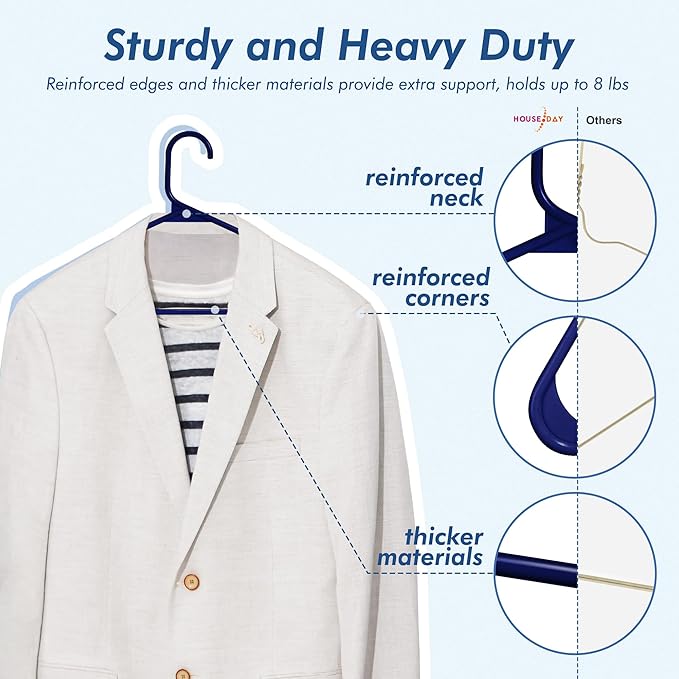 - Trusted Brand – With countless years of experience in the commercial and consumer hanger industry, HOUSE DAY is confident that we have perfected the design of hangers. We're so confident in our plastic clothes hangers