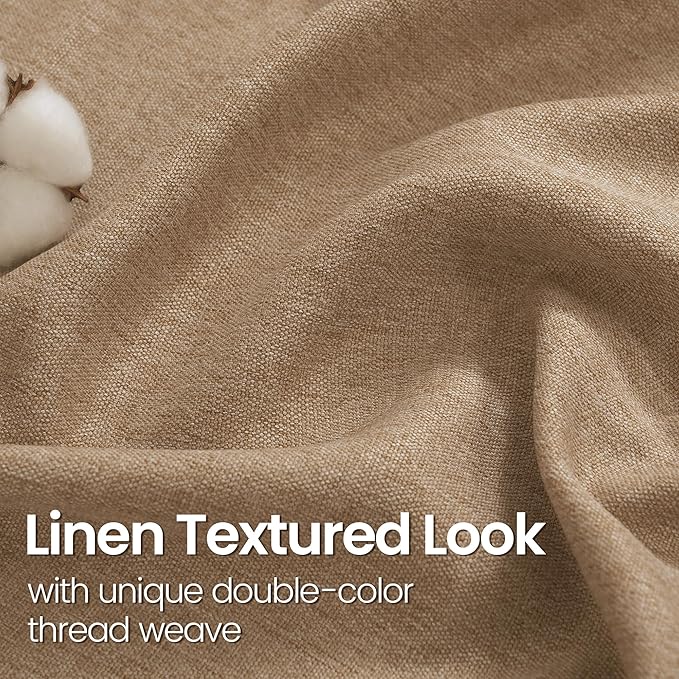 - Classic Linen Texture Curtains: Featuring a unique double-color thread weave that maintains a classic linen texture while add more natural look. These window curtains with soft touch feeling, wrinkle-resistant, and drape elegantly. Enhanced with rustic and elegance, they add charm to any space, whether it's the living room, bedroom, farmhouse, dining room, office, or any other style of room.