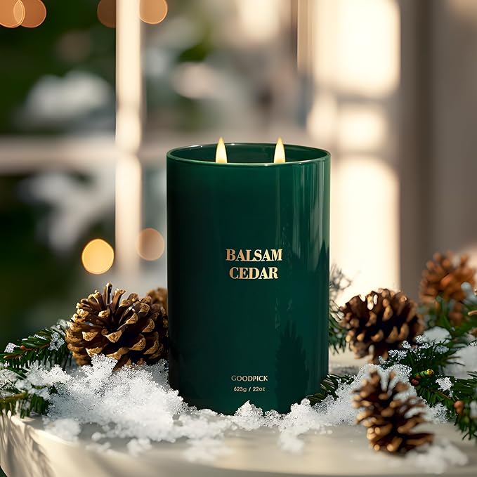Goodpick Balsam Cedar Candle 22 oz, Pine Candles for Home Scented, Winter Candle for Classic Luxury Aromatherapy, Big Green Soy Candles, Large Jar Candle Gifts for Christmas, Birthday, Men, 2 Wicks