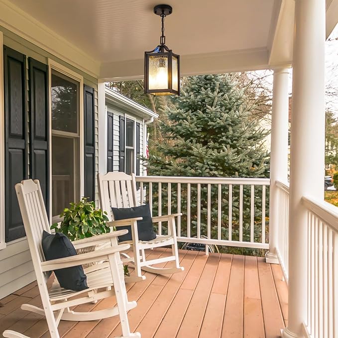 - Height Adjustable and Easy Installed: This exterior hanging light fixture with a long 63 inches chain freely adjusts as you require and includes all mounting hardware for easy installation