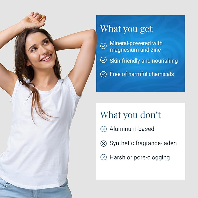 - 24-Hour Odor Protection Without Compromise - Ancient Minerals Natural Deodorant Cream offers reliable, all-day freshness powered by magnesium and zinc—formulated without aluminum, baking soda, or synthetic fragrance.