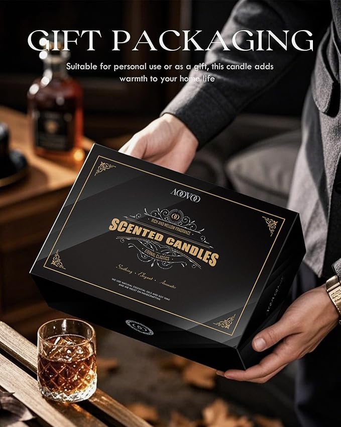 - Candles for Men Set: We have carefully blended 6 different fragrance types, Sandalwood Oud/Mahogany Teakwood/Rose Sandalwood/Vintage Leather/Lavender Wood/Whiskey Caramel. Each scent is carefully blended by professional perfumers, with rich layers and long-lasting charm, bringing you a unique olfactory experience and making you feel as if you are there