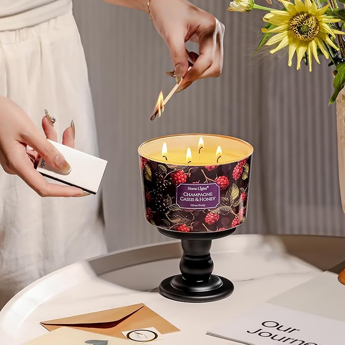 HomeLights Scented Candles for Women & Men, 18oz Candle Jars Aromatherapy 4-Wick Candle, Ideal for Eclectic Mixed Styles Home Decor and Gifts, Champagne Cassis & Honey