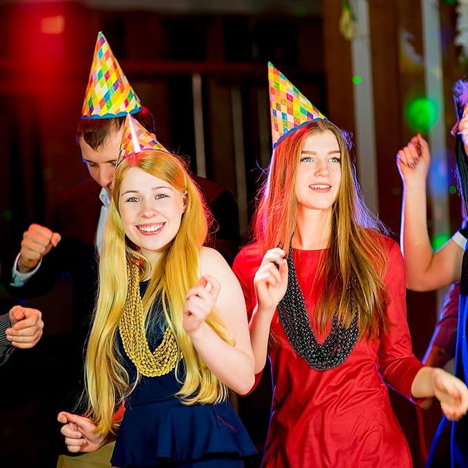 - New Year Necklace: The gold new year bead necklace, black new year bead necklace, properly suitable for New Year's Day, Mardi Gras, Christmas, Halloween, dress up party and more. Gold party beads, Black party beads can meet all your needs!