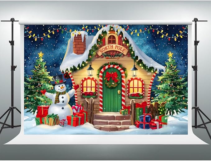 YongFoto Merry Christmas Backdrop 9x6ft North Pole Night Sky Pine Forest House Snowman Xmas Tree Photography Background 2026 New Year Winter Holiday Party Banner Photoshoot Wallpaper Photo Booth