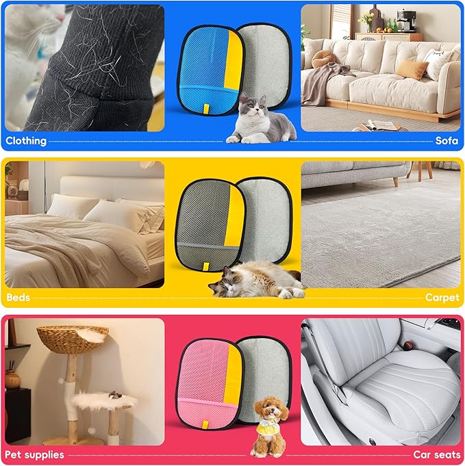 • 🚀 Multi-surface Application: This fur removal tool can quickly clean large areas. Whether tackling pet hair on clothes, beds, sofas, carpets, or car seats, the pet hair magic brush is designed to work on almost any fabric surface. Keeping your home and car clean and hair-free. The pet hair removal glove is an essential grooming tool for households with cats, dogs, or multiple pets. It can be a cat hair remover or a dog hair remover, Also it can be a magic brush and lint remover. You will like it.