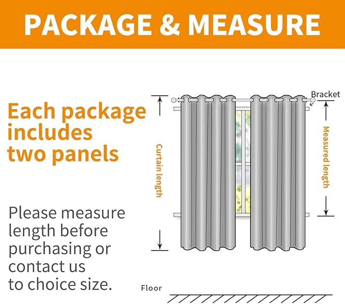 - Tips: Our curtain width is flat width for each panel before hanging, actual coverage width is less. Choose total curtain flat width at least 1.5-2 times wider than window for perfectly coverage. Please measure the length and height of the window or contact us in advance to help you buy the right.